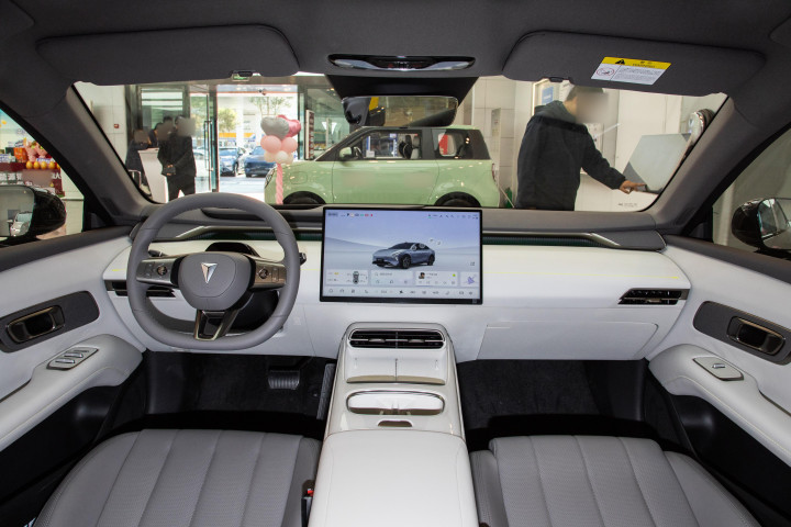 内装设计比较有特色,皮质多功能方向盘手感舒适,操作便捷,搭配电子式怀挡的应用,不仅提升了驾驶的便利性,更彰显了电驱款式的身份。整体设计明显采用了新能源领域常见的简约与科技融合的风格,视觉上更加前卫和高级。方向盘前侧并未设置传统的仪表屏幕,而是巧妙地留白,使15.6英寸的中控大屏以悬浮形式独立呈现。中控屏的布局不仅有效吸引了观察者的目光聚焦于车辆中部,还进一步强化了内饰整体的简洁感和现代感,避免了过多元素的杂乱感。而且仪表盘的常规信息显示功能已由中控屏全面兼顾,驾驶者可以通过大屏清晰获取各项行车数据。此外,当车辆进入行驶状态后,还有50英寸的抬头显示系统进行信息投射补充,确保了驾驶实用性与操作便利性。这一设计不仅未削弱功能性,反而通过科技手段增强了车内的氛围感与高级感,整体体验丝毫不逊于传统仪表盘存在的车型。